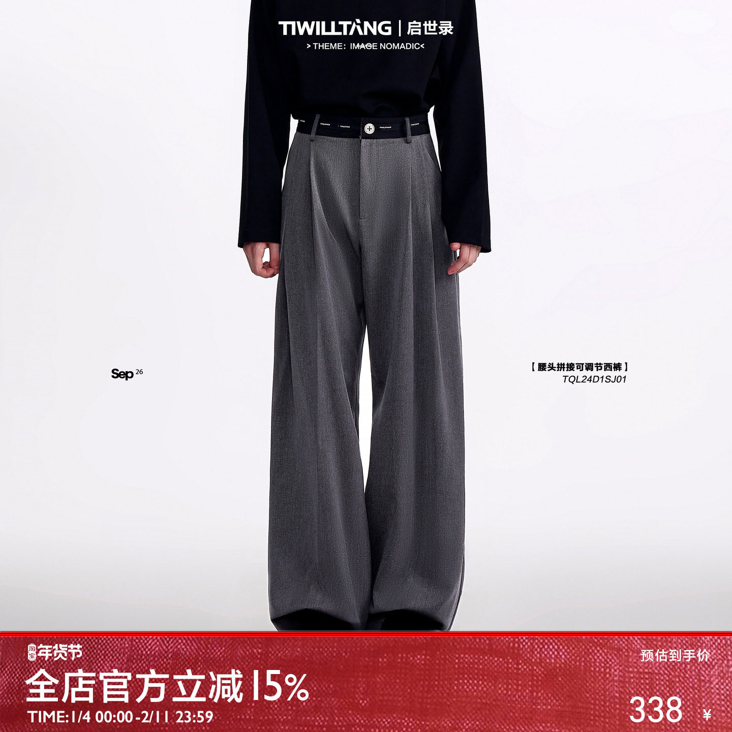 TIWILLTANG "Empty Room White" new spliced adjustable straight waist adjustable trousers
