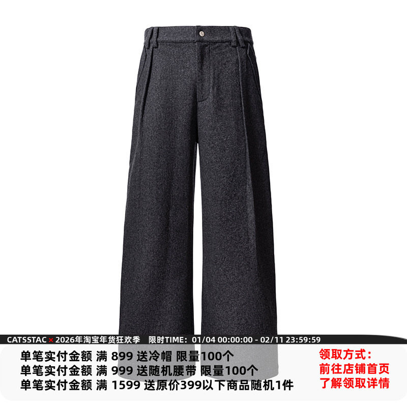 CATSSTAC herringbone wool-blend wide-leg trousers straight fit modify the leg shape Simple and elegant