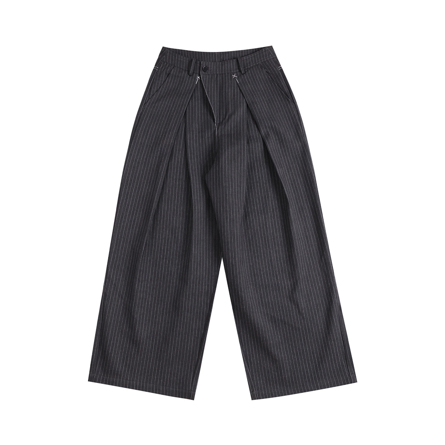 MAT JENIN diagonal placket-blend loose-leaf three-dimensional cut A-line wide-leg striped trousers and loose casual trousers