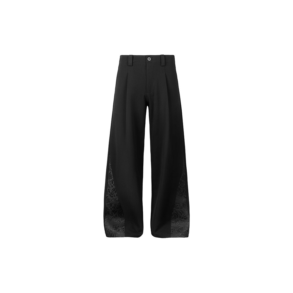 OkayThxBye 527g TR "Dark Pattern Carving" Elegant Court Stitching A-Line Wide-Leg Casual Pants Trousers