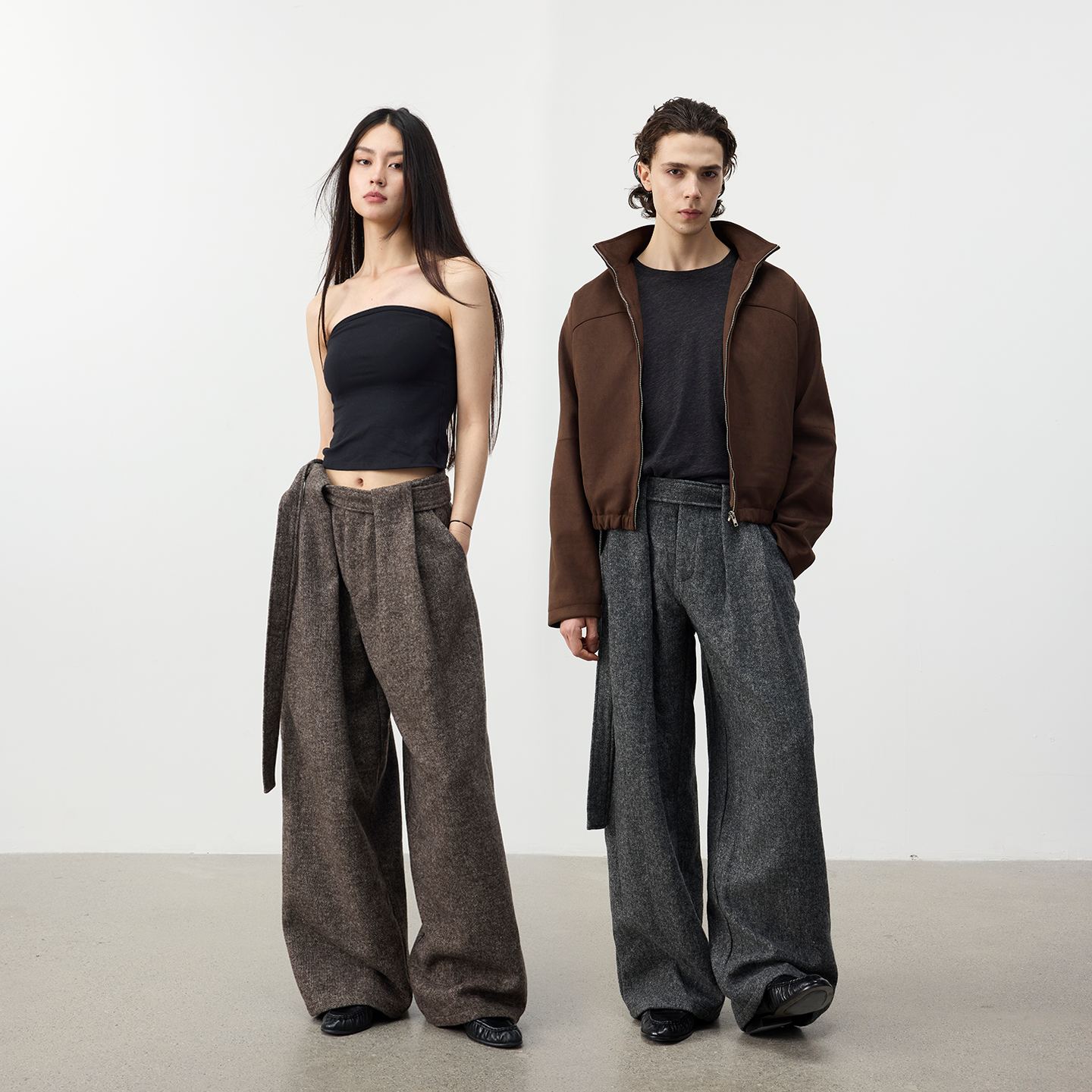 FLLM premium drape double pleated trousers are versatile straight leg loose slacks