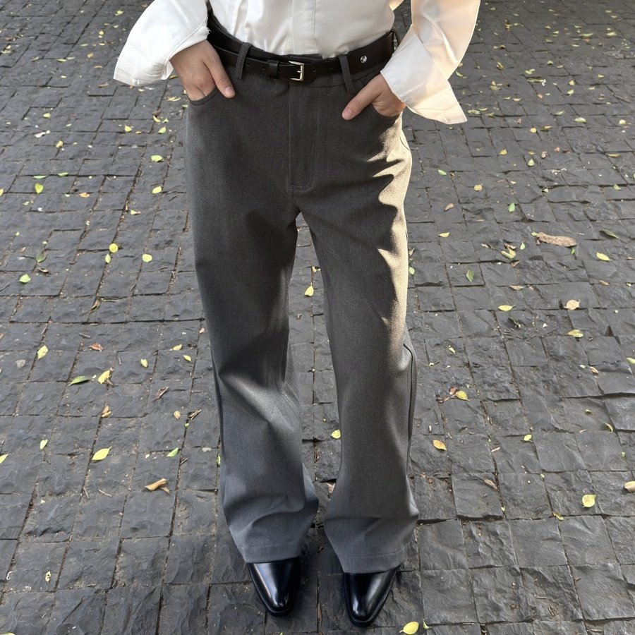 South Korea light luxury old money cleanfit three-dimensional I-line pleated A-line silhouette scimitar TR trousers commuter slacks men