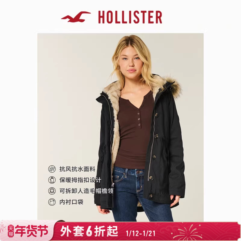 Hollister 25 Autumn and Winter Faux Fur Parka Cotton Jacket Women's 344-5073