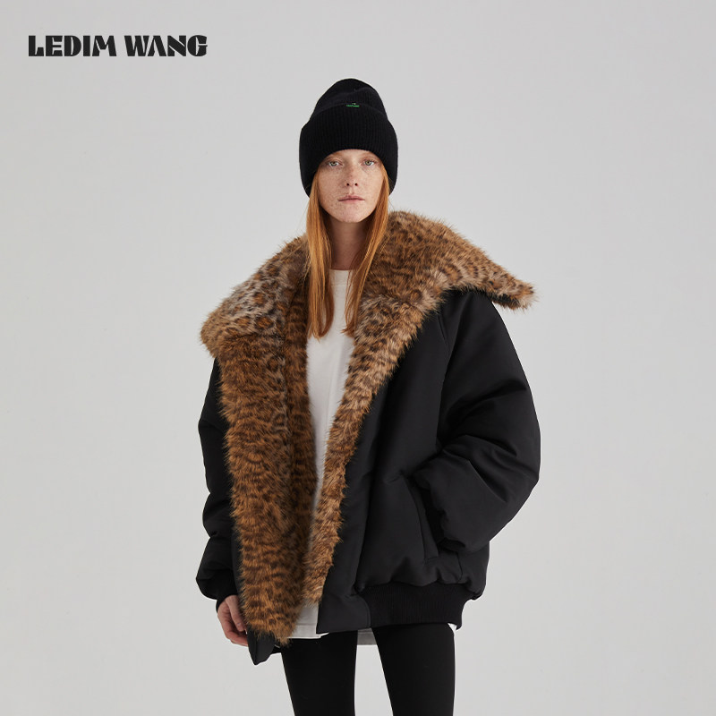 LEDIM WANG tiger stripe eco-friendly fur cotton jacket is worn both front and back