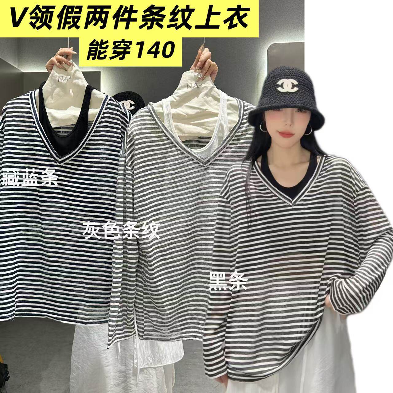 0316 [Nana Benefits] V False Two Striped Tops Do Not Fade or Change