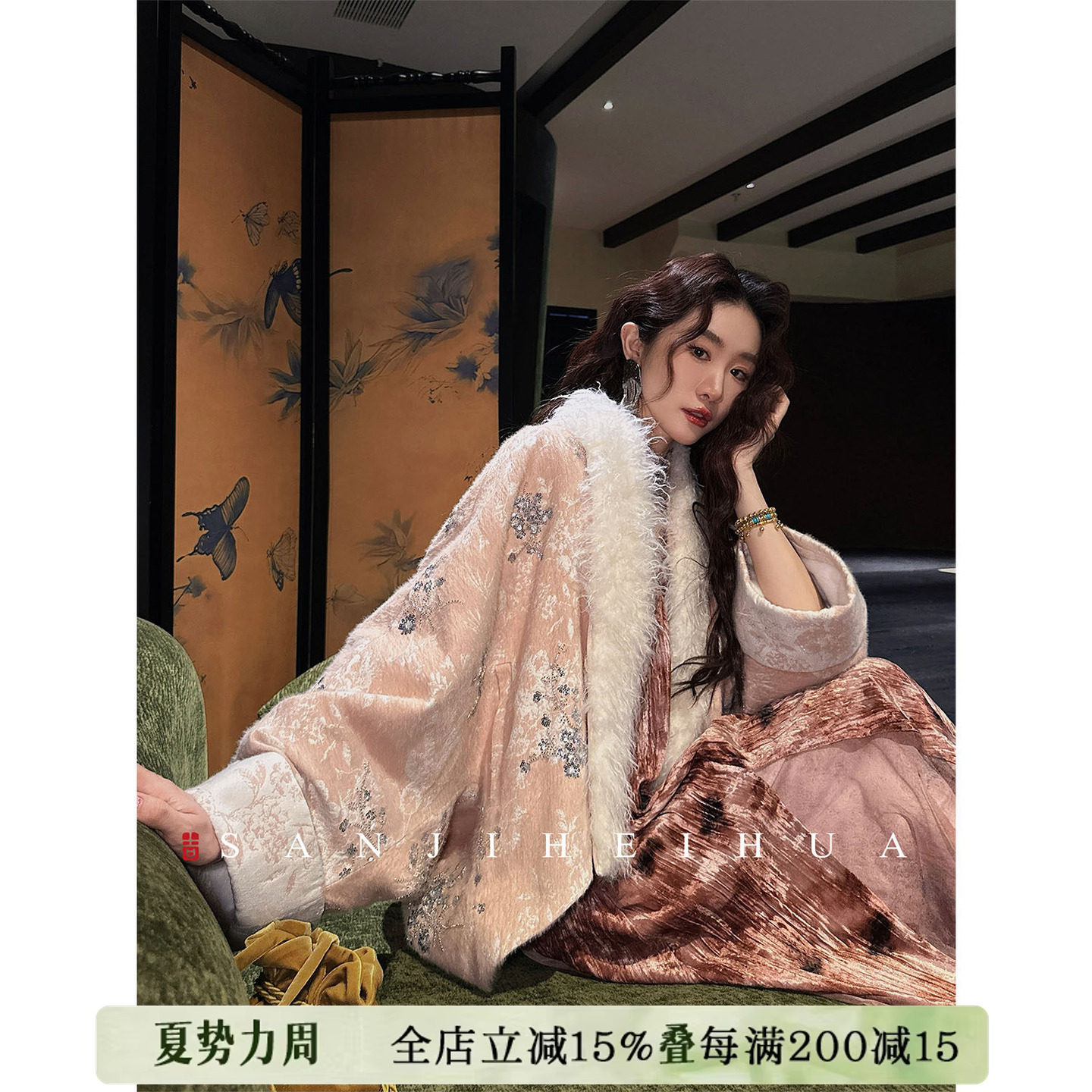 Sanji Black Flower [Xiaoman] New Chinese cotton jacket women's winter beads embroidered multi-layered yarn-dyed wool Zen
