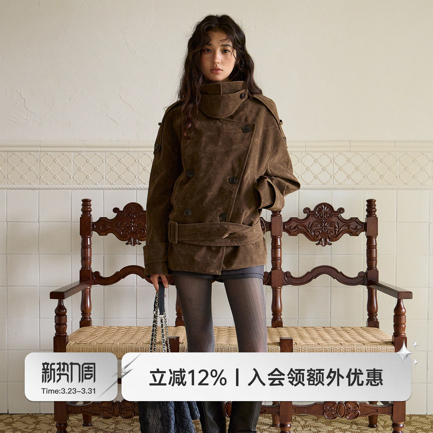 CTheMoon French fashionable retro stand-up collar cropped padded warm cotton jacket brown thickened coat short coat for women