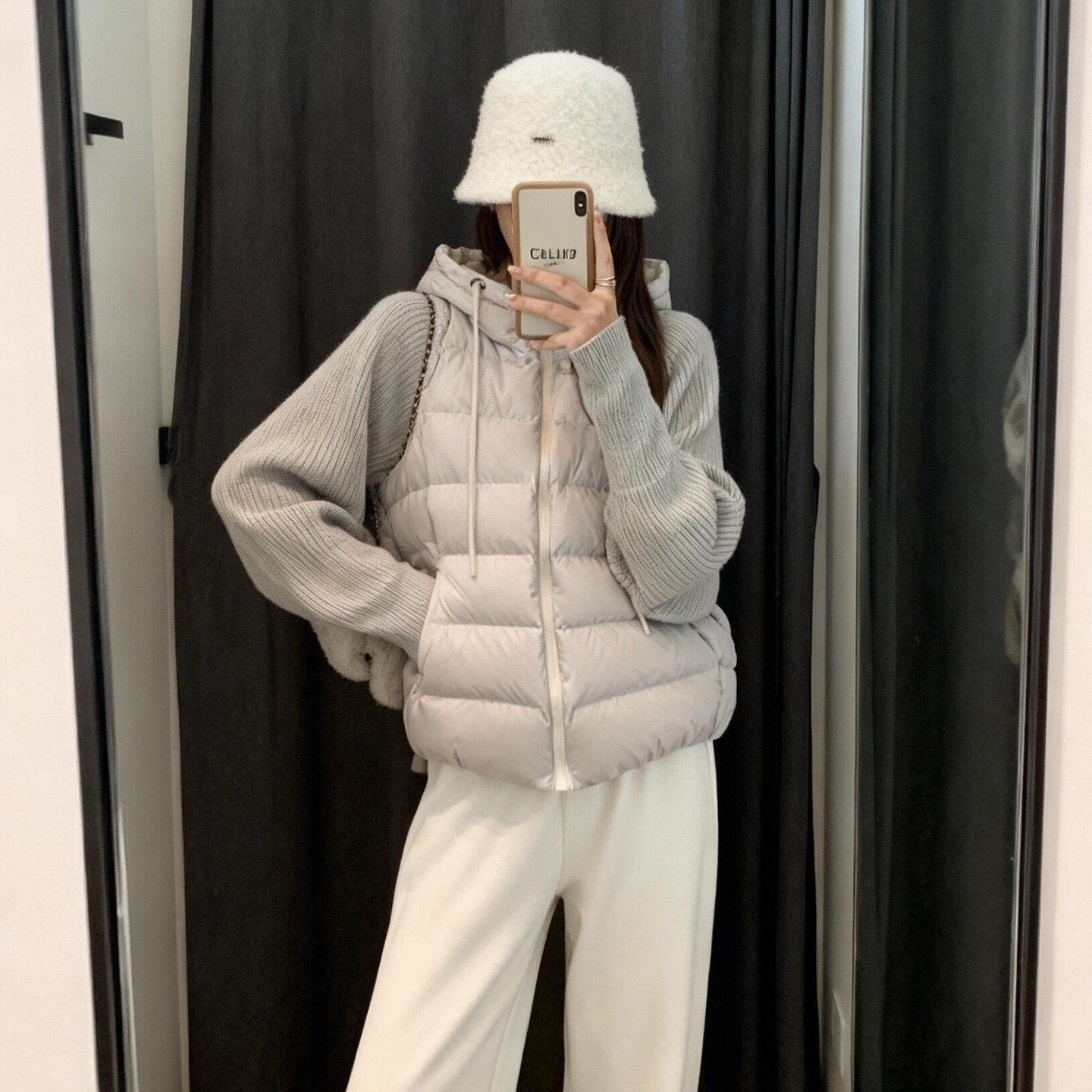Knitted spliced down padded jacket women's winter 2026 hooded cotton jacket small jacket is super good-looking, short padded jacket
