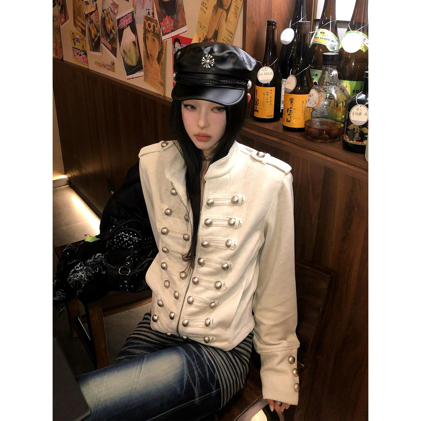Napoleon court style coat women's spring new slubby rivet cropped jacket slim slim hottie top