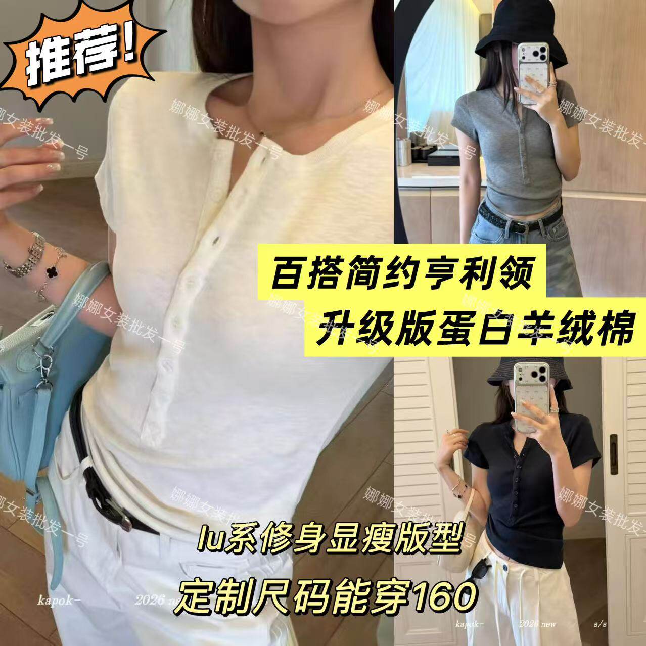 0314 [Nana New] Henry collar half-buttoned short-sleeved T does not fade or change Mina top explosive