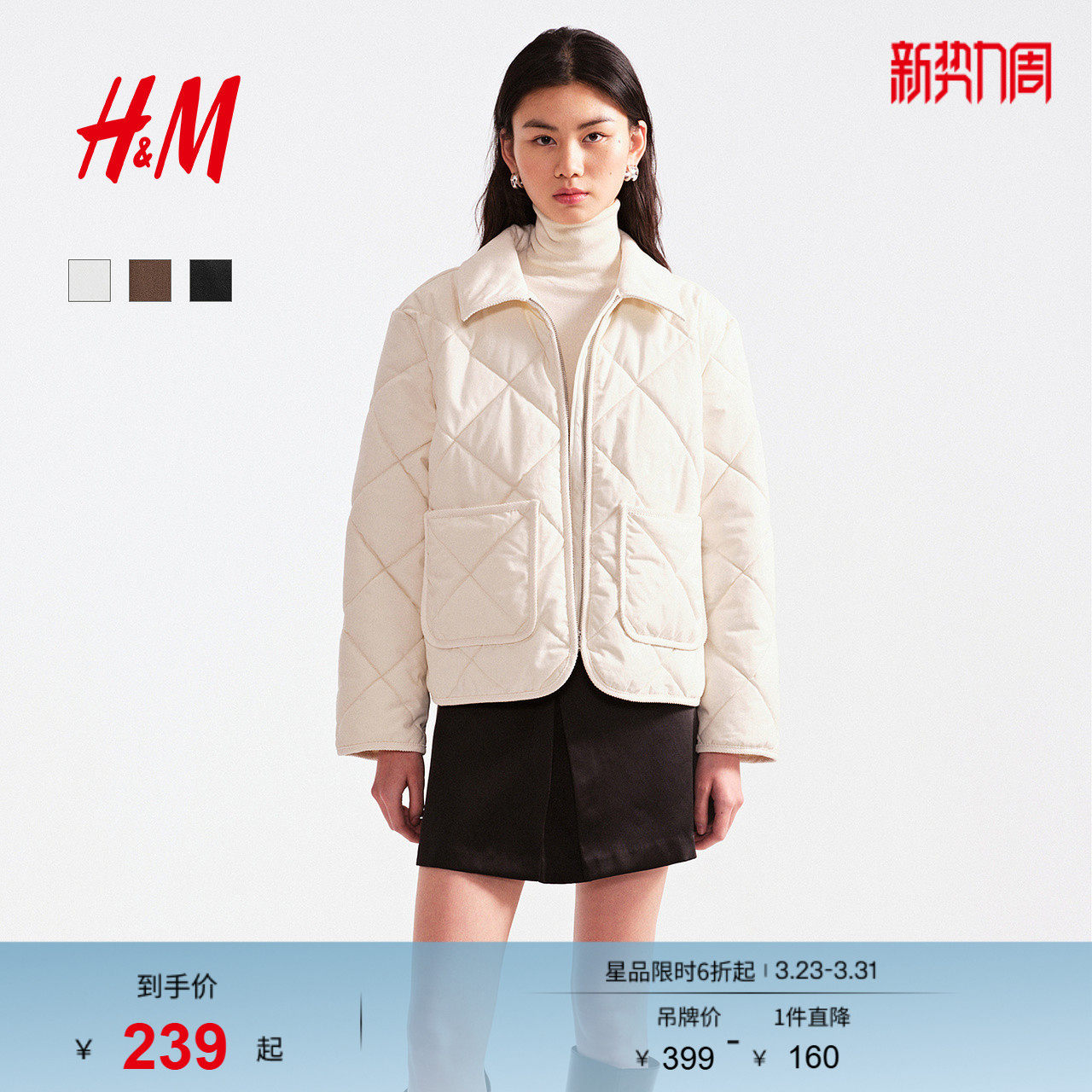 HM Women's Cotton Jacket Spring 2026 New Turnip White Wearing Quilted Corduroy Jacket 1000061