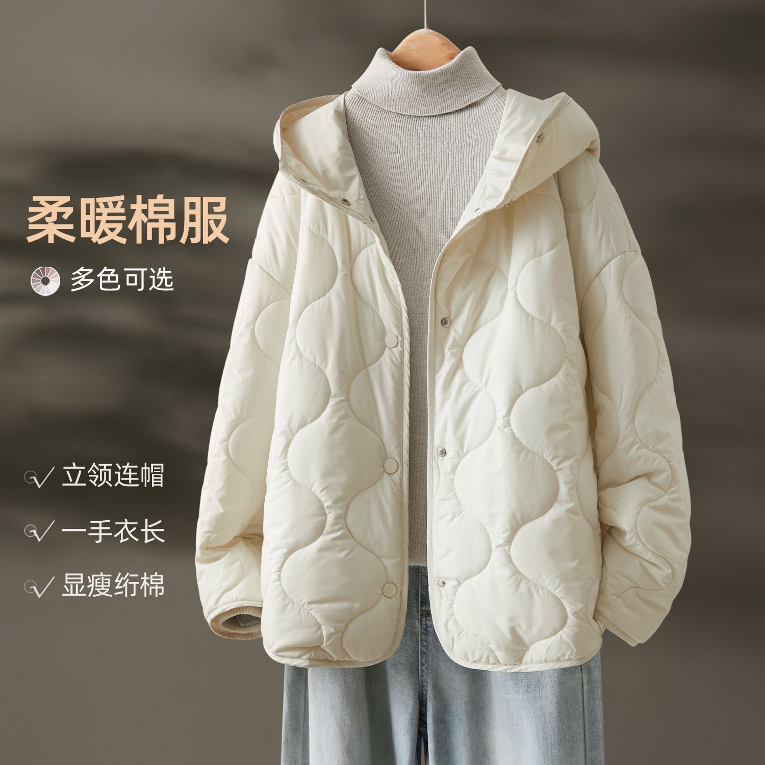Zhou Langqing, a small man and a light diamond plaid cotton jacket women's 2026 new winter off-white warm cotton jacket