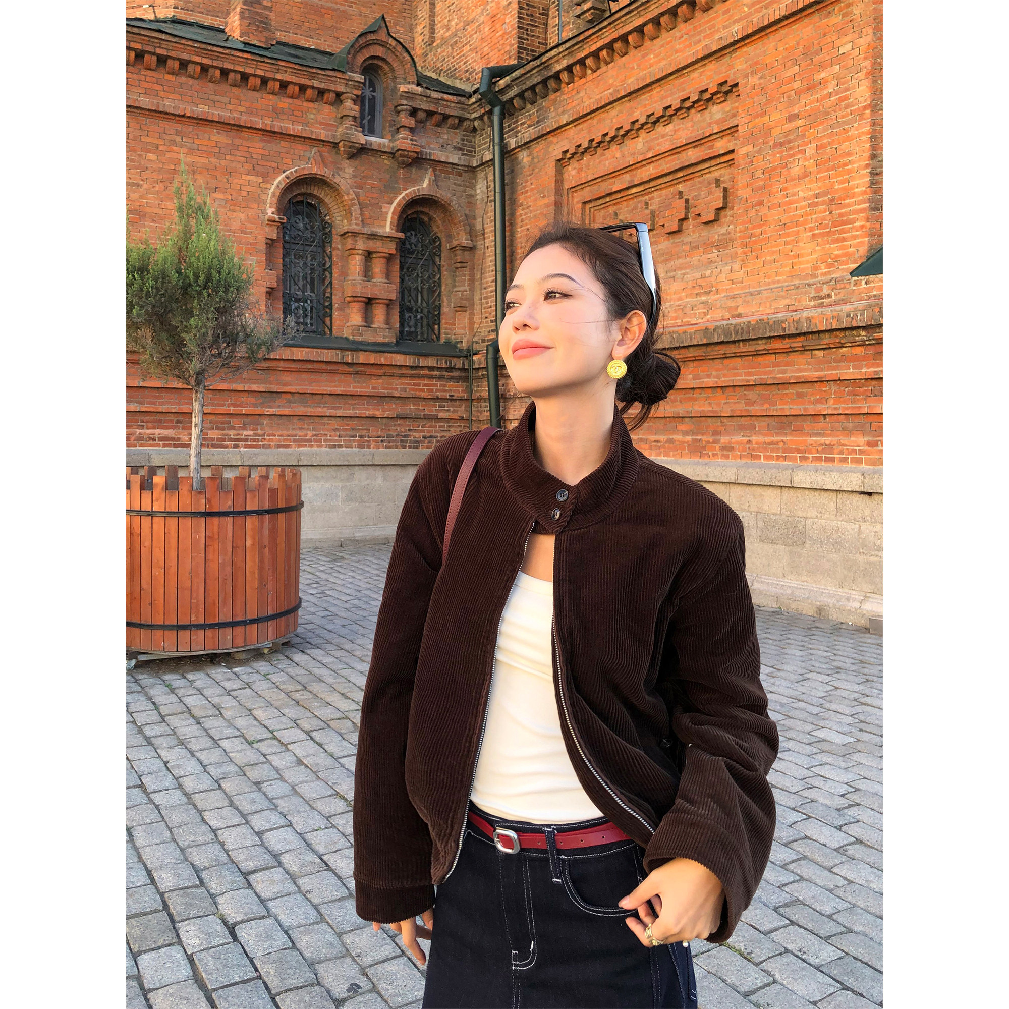 pusumede timeless style vintage corduroy stand-up collar cotton jacket women's loose casual jacket top