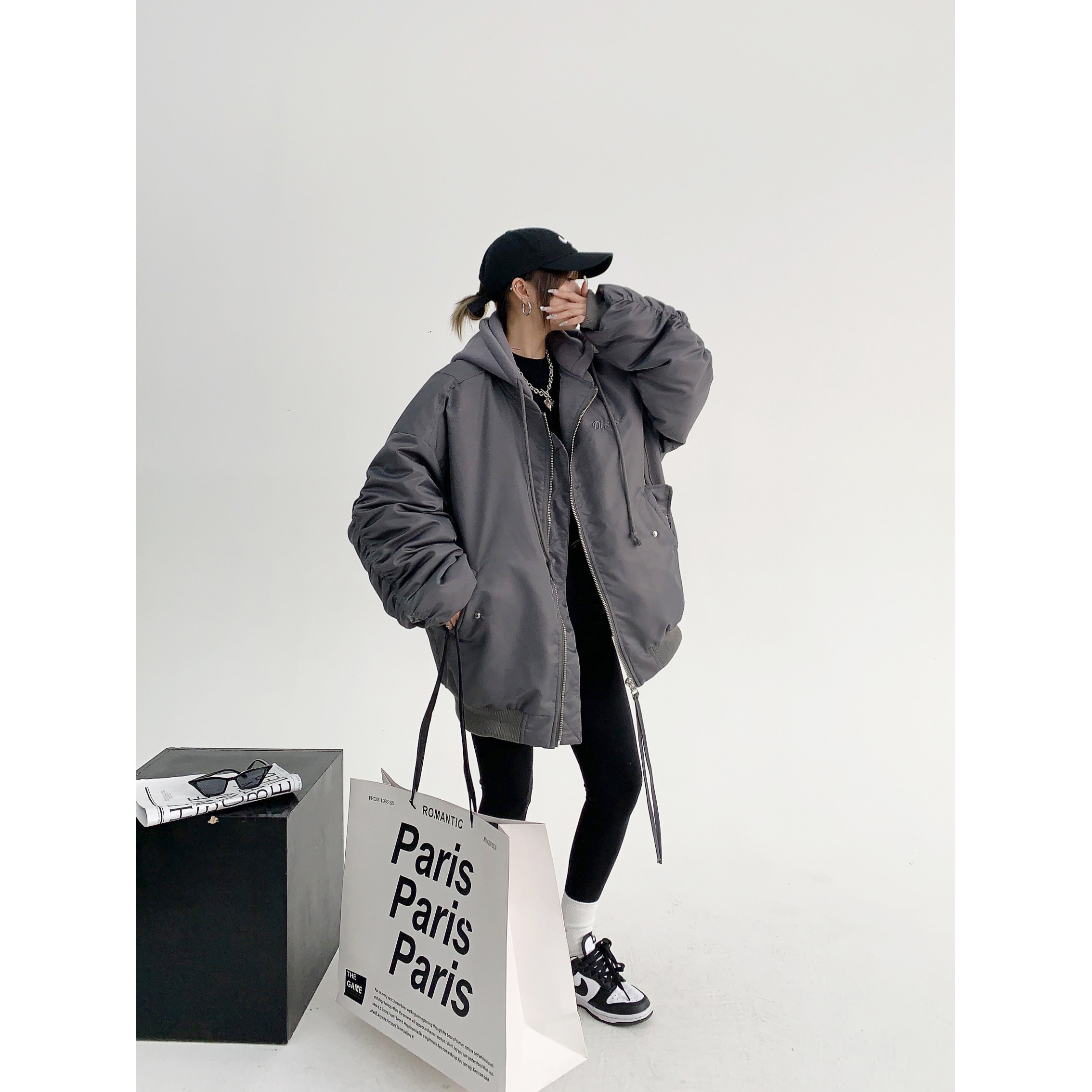 Waste wood winter heavy American couple bread cotton clothes loose retro design sense thickened hooded cotton jacket women
