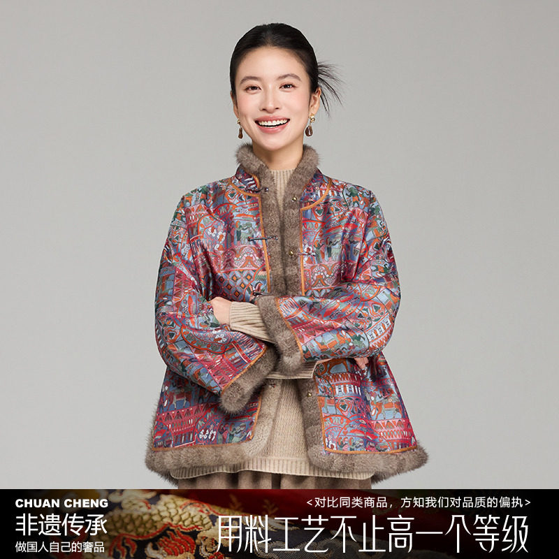 First time I saw Shisan Niang [Linjiang Xian] intangible cultural heritage Shu brocade cotton clothes women, 100% mulberry silk new Chinese sheep wool coat women