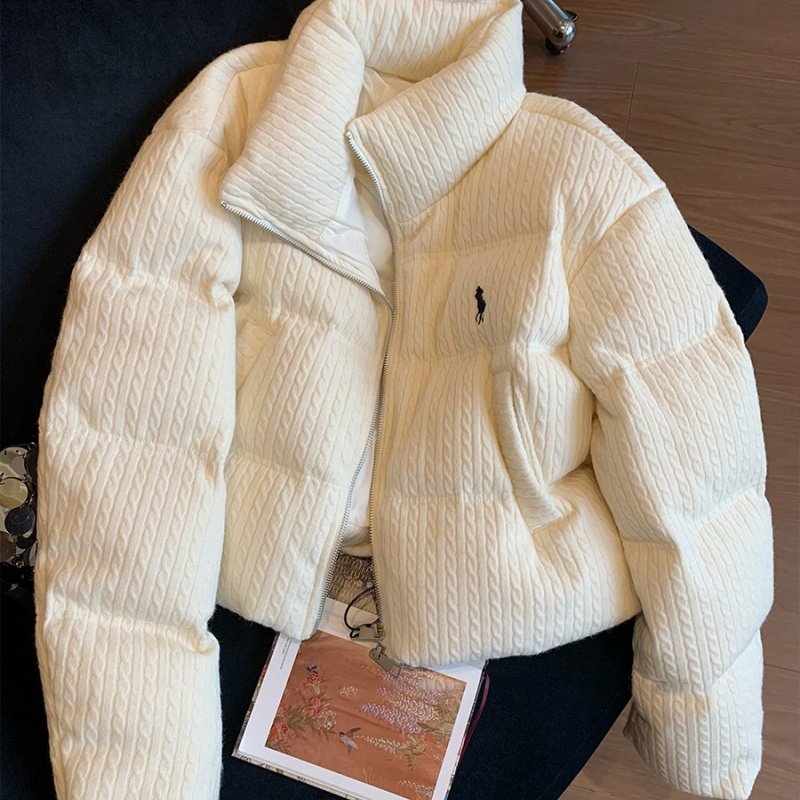 Fashionable high-end stand-up collar textured white cropped cotton jacket men's and women's autumn and winter Korean niche versatile bread clothes