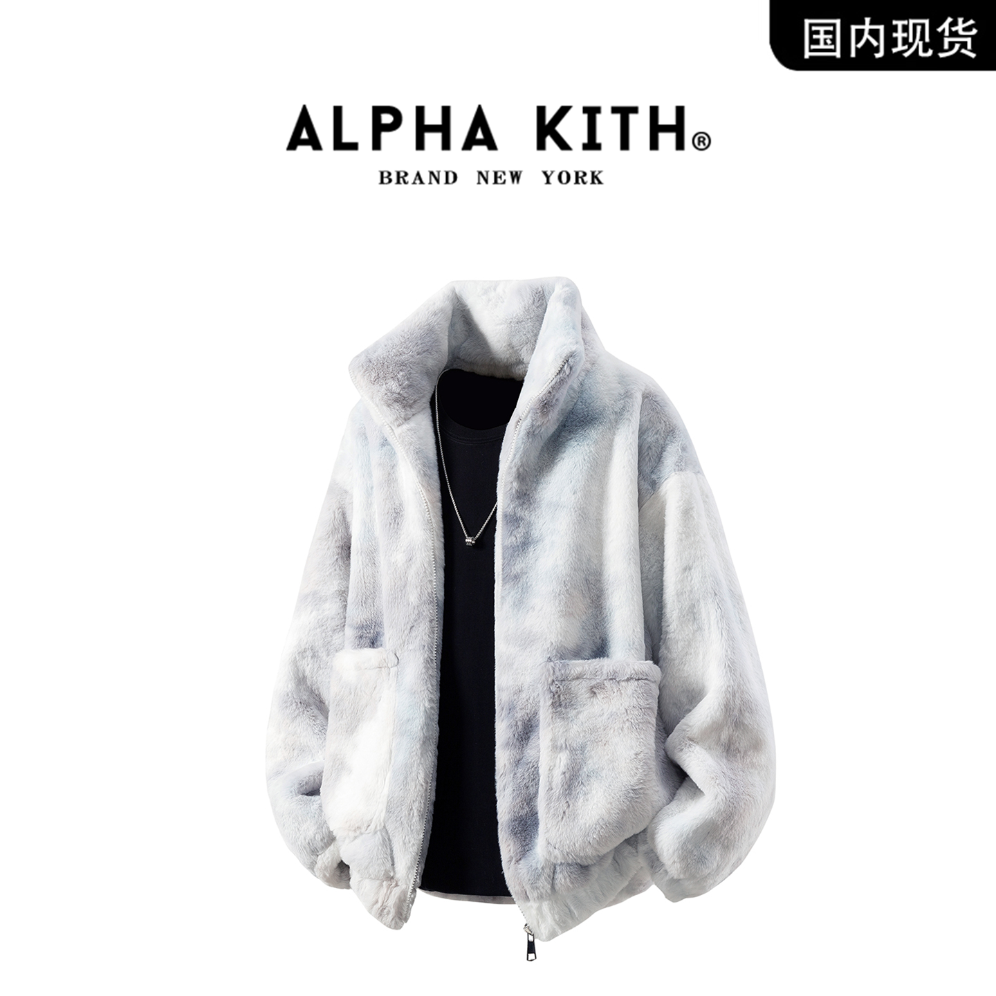 ALPHA KITH official genuine lamb wool tie-dye couple plus-size sweatshirt fleece thickened loose cotton jacket for men