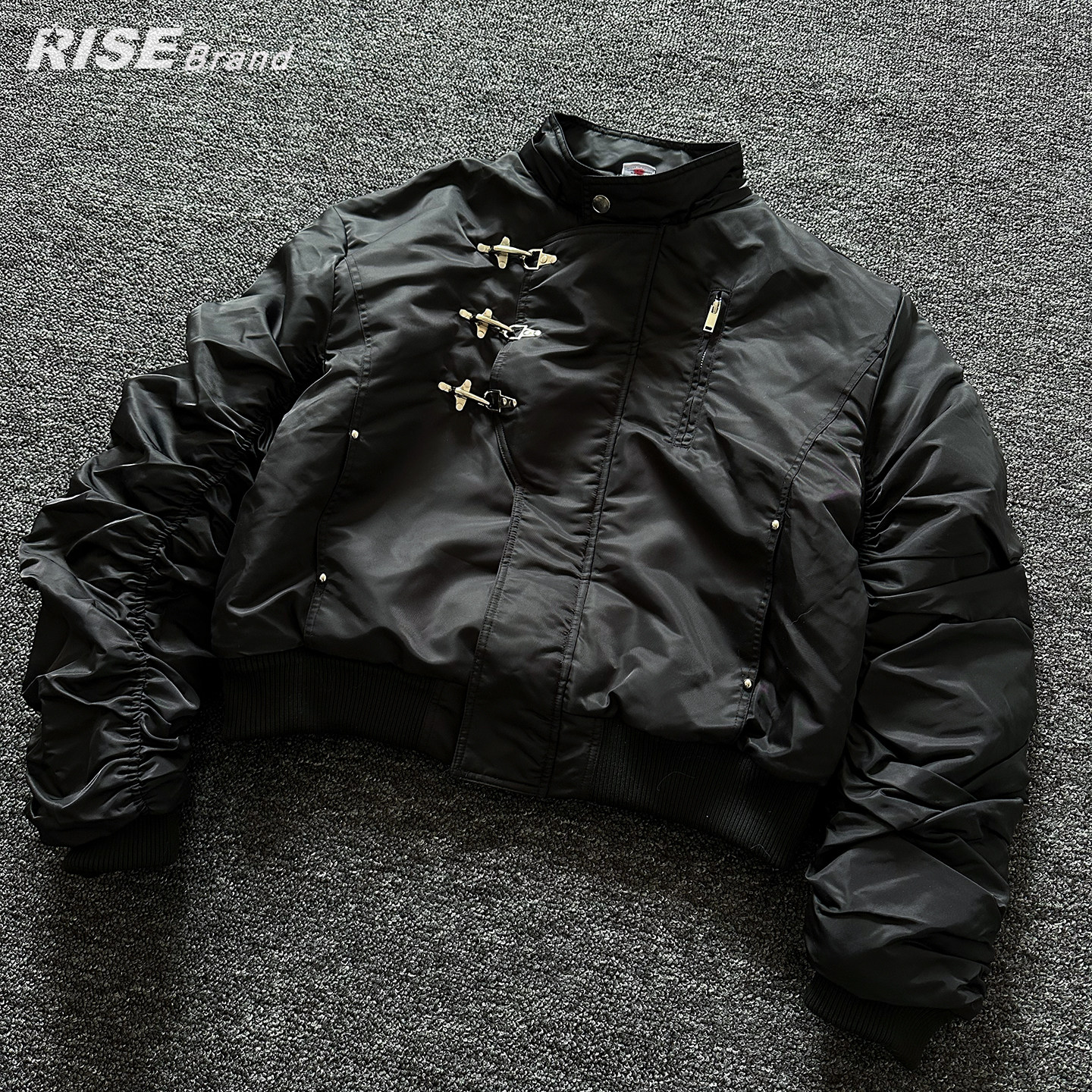 "Rise Brand" cotton jacket ruffian, handsome pleated design, scimitar sleeves, bomber flight jacket, cropped jacket for men