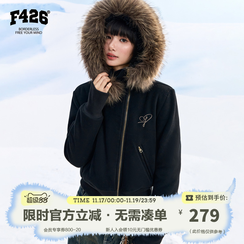 【F426 Official Store】Super good-looking winter short cotton jacket "Detachable fur collar" diagonal placket cotton jacket