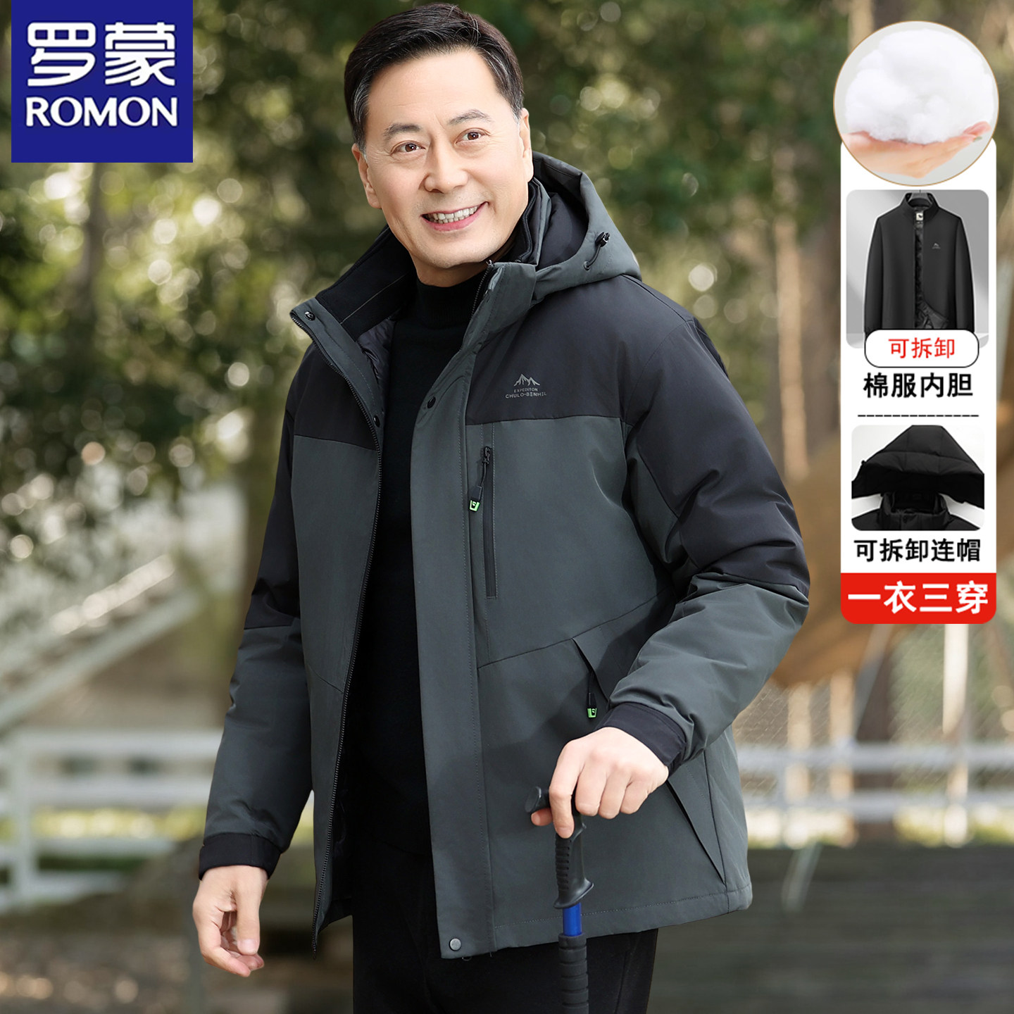 Disassemble the liner parka cotton jacket men's winter fleece thickened padded jacket middle-aged and elderly father winter cotton jacket