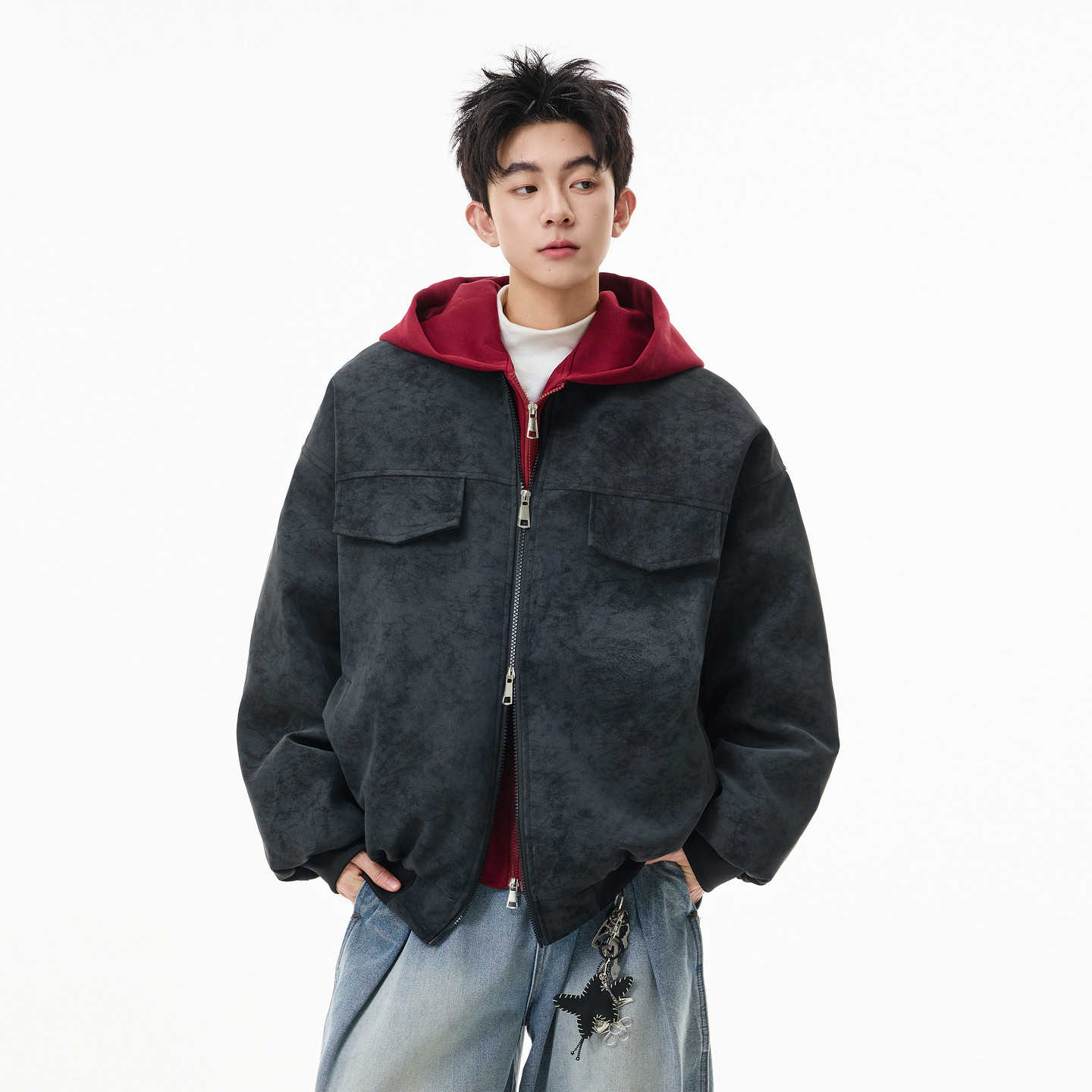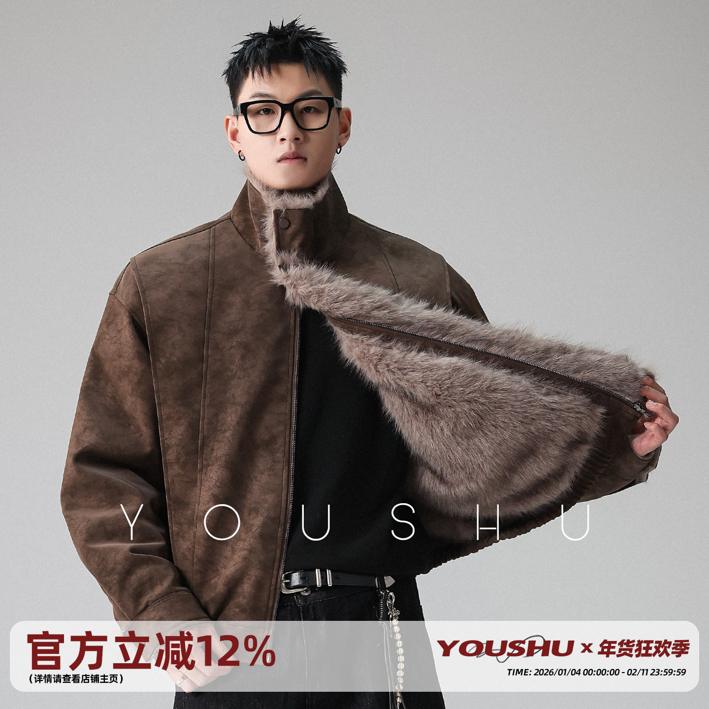 There is a way to cut the fur and the fur is integrated, and the cotton coat for men in winter 2025 is a new retro thickened cotton jacket leather jacket trend