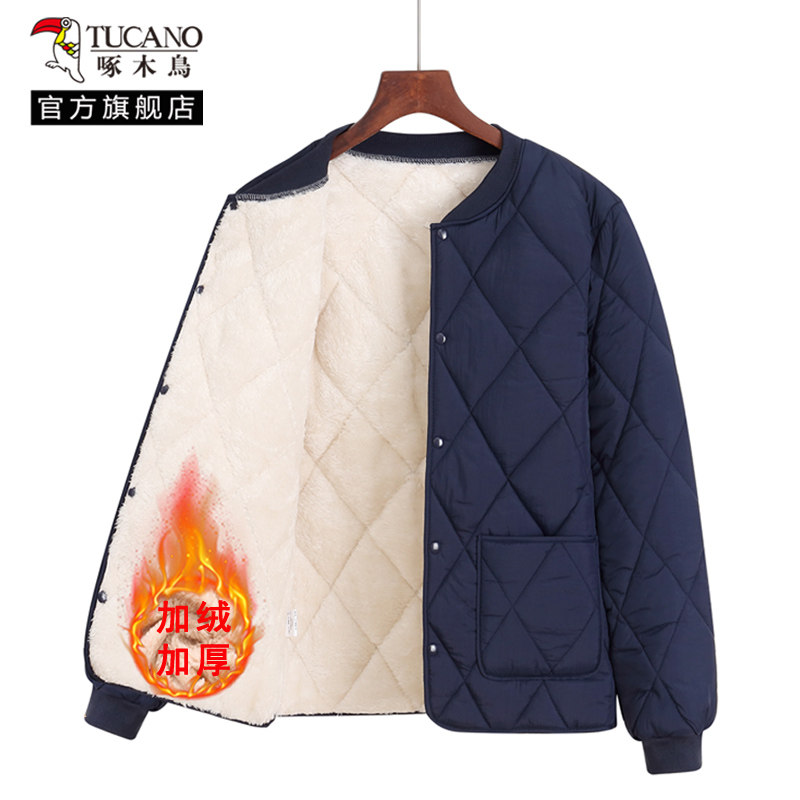Woodpecker cold-proof cotton jacket liner men's 2025 winter new style wears fleece and thickened padded jackets and warm cotton jackets for middle-aged and elderly people