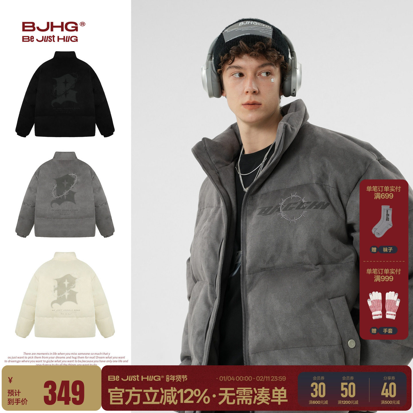 DBW Doublewin heavy suede faux fox fur padded jacket winter loose and wide shoulder pad thick jacket