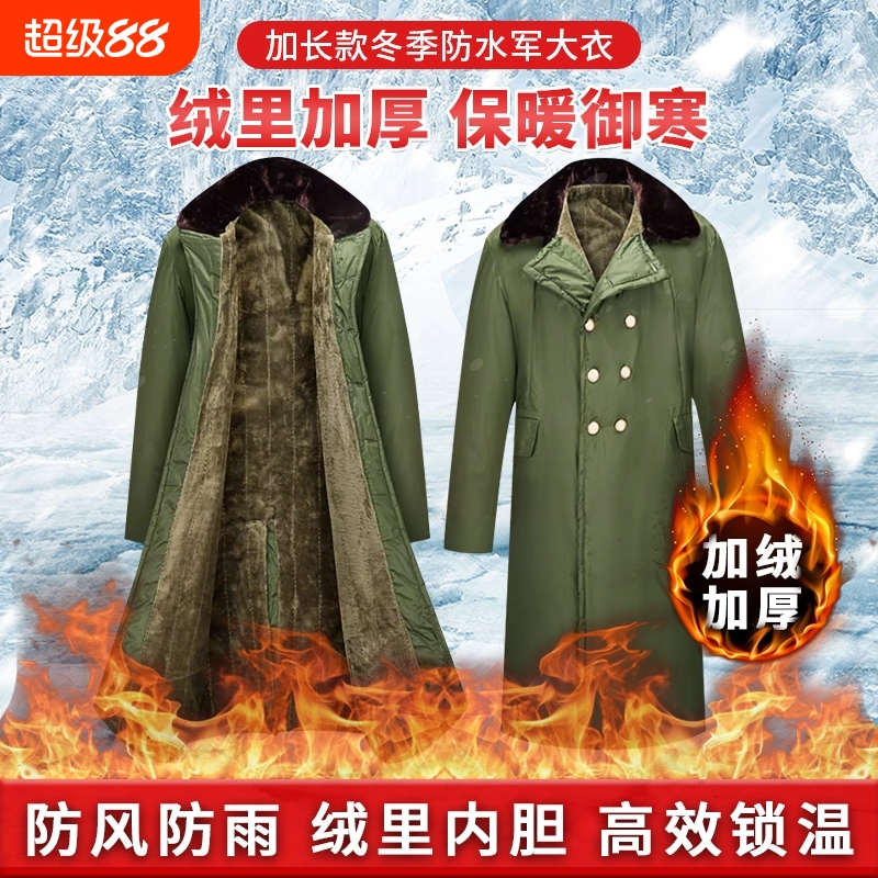 Military coat men's winter thickened fleece long security guard autumn and winter cold clothing Northeast padded jacket old-fashioned military cotton coat