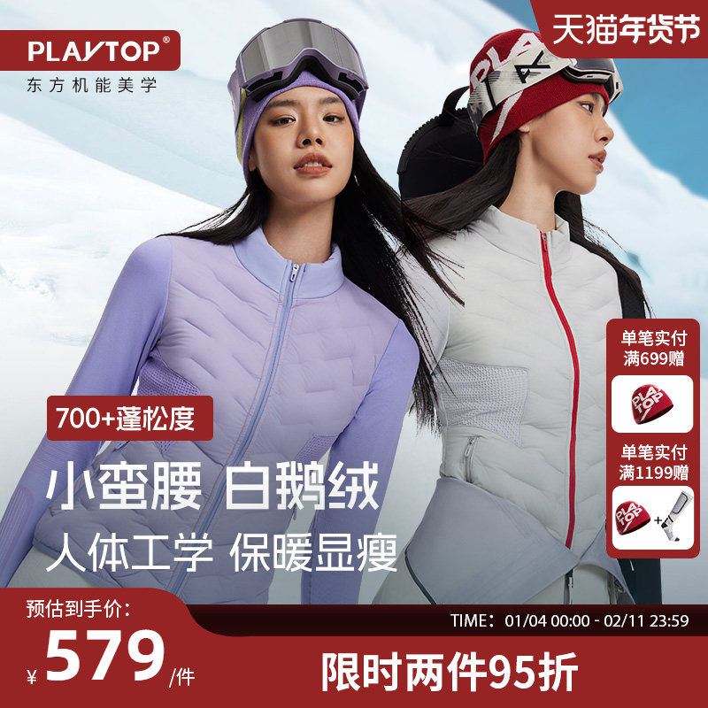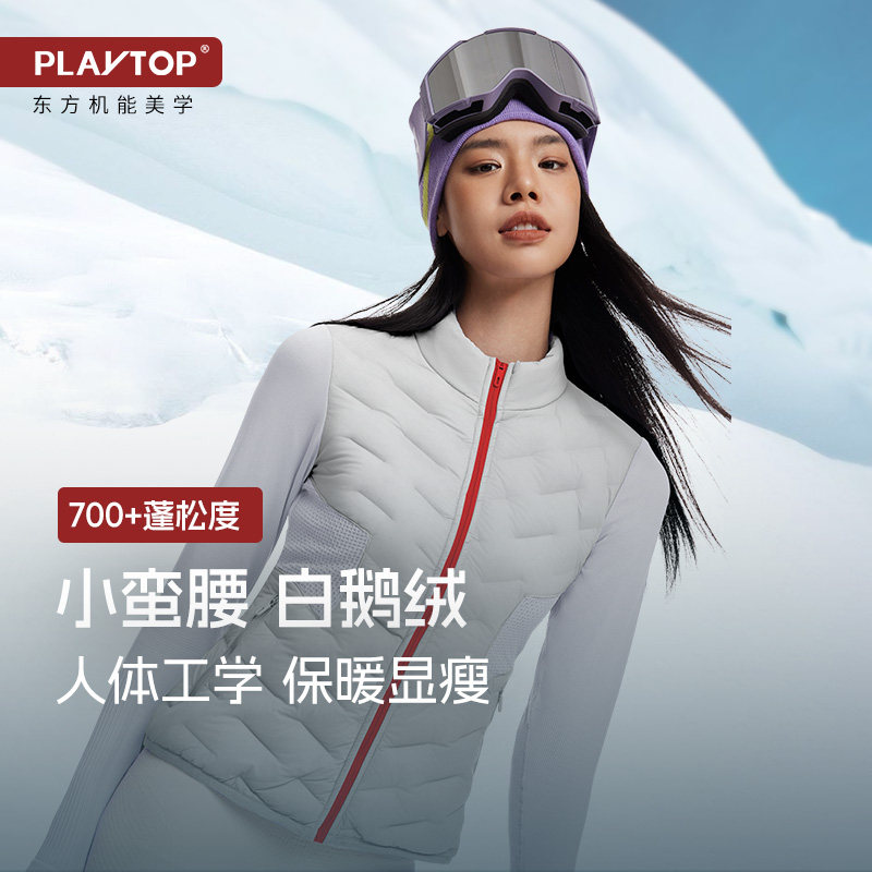 PlayTop Goose Down Warm Ski Golf Liner Female Slim Hiking Lightweight Rib Down Jacket Midlayer