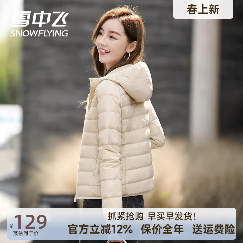 Fly in the snow light down jacket women's short 2026 new hooded stand-up collar outdoor fashion thin autumn and winter jacket