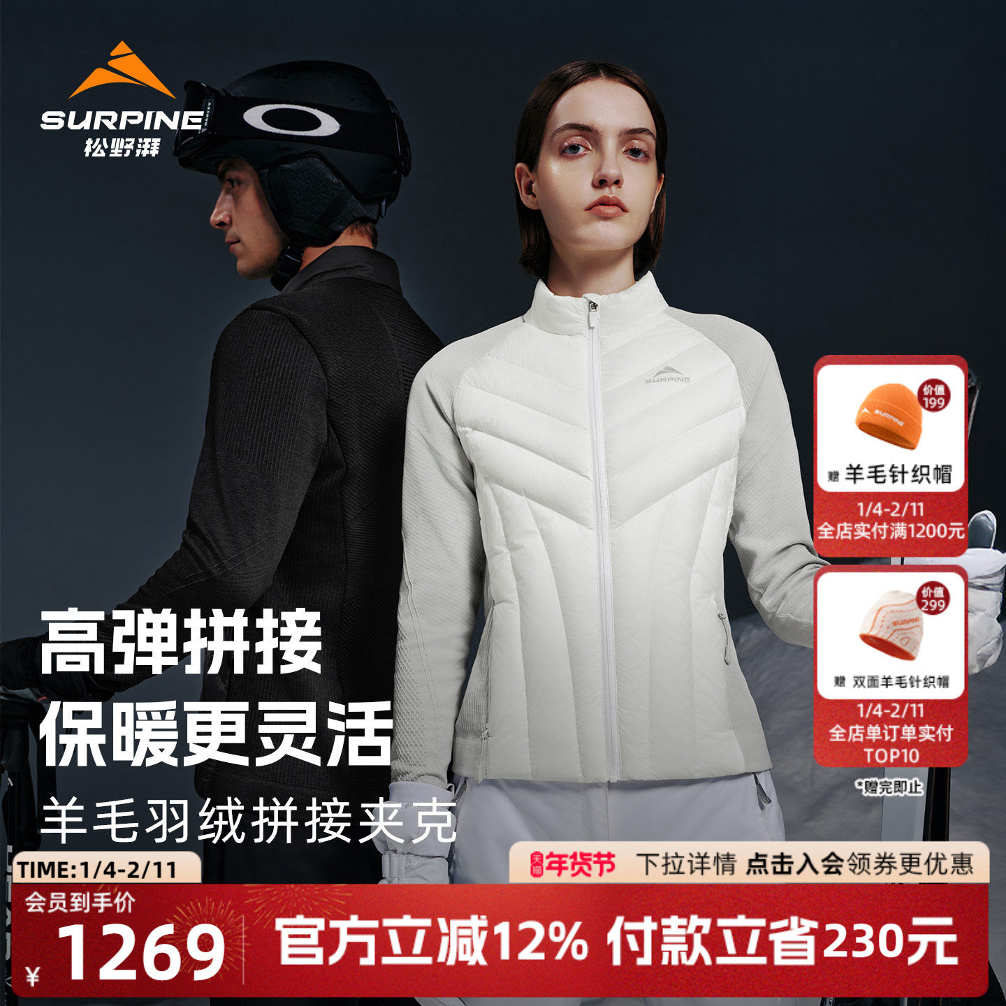 SURPINE Matsuno Pamerino wool knit down liner mid-layer women's warm ski jacket goose down