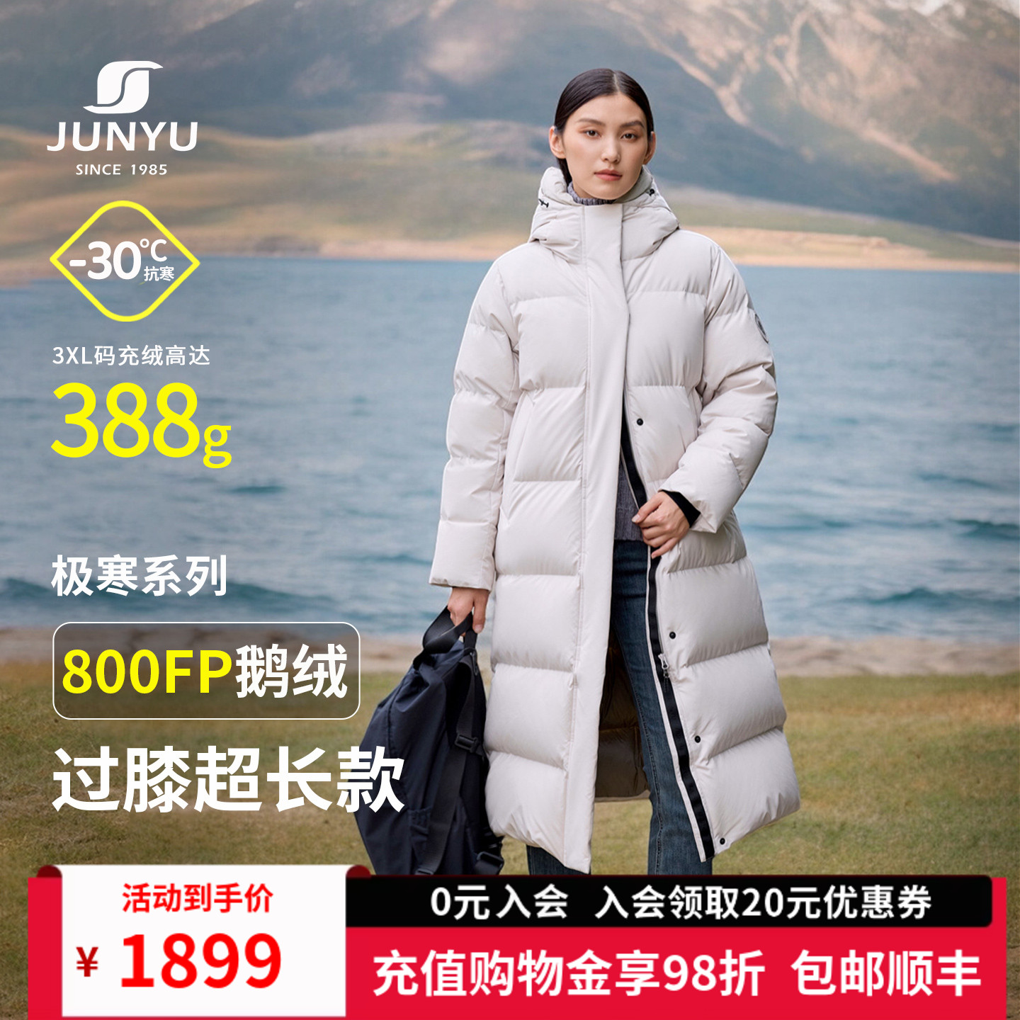 Junyu 800 fluffy long down jacket women's over the knee winter versatile high filling fleece cold-resistant thickened goose down jacket I52298