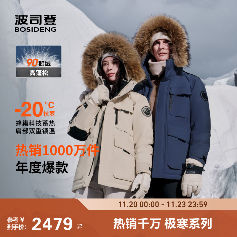 Star same Bosideng outdoor extreme cold couple workwear parka warm fur collar mid-length goose down down jacket for men and women