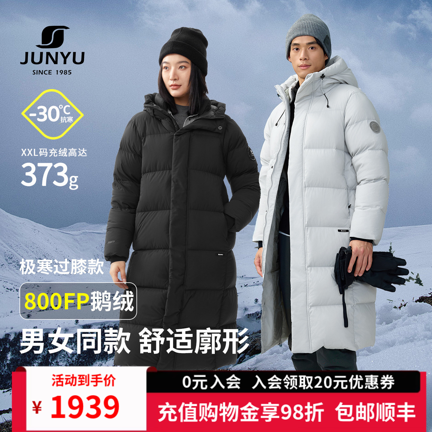 Junyu 800 fluffy goose down jacket women's over the knee long winter thickened cold-resistant and warm goose down jacket men's H52295
