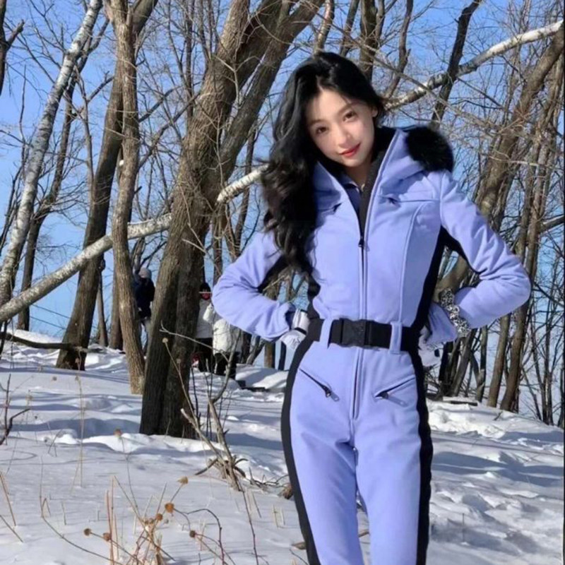 Contrasting ski suit 2025 autumn and winter new purple loose waterproof waist slim fashion warm down jacket women's trend