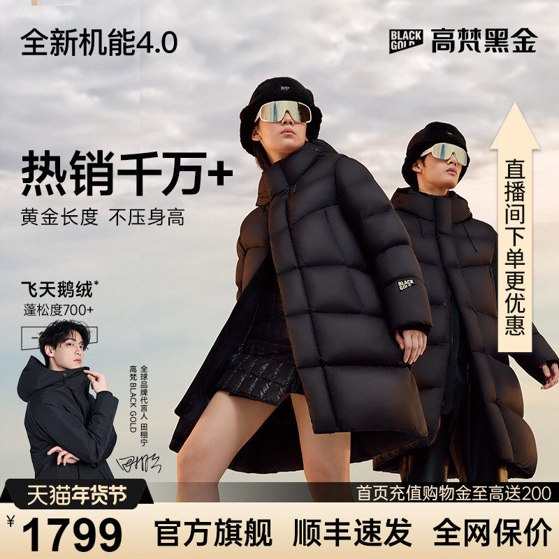 【Gaofan Black Gold Goose Down Jacket】Functional 4.0 six-compartment outdoor down jacket women's men's mid-length ski thick jacket