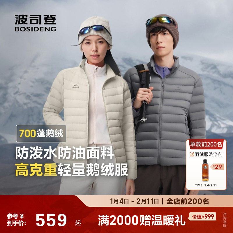 90 goose down Bosideng 25 autumn new rib strip stand-up collar down jacket for men and women, short windproof jacket with thin lining