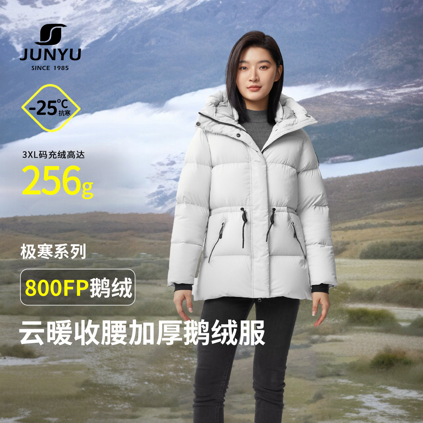 Junyu 800 Peng95 white goose down jacket women's mid-length thickened winter warm hooded women's goose down jacket 198