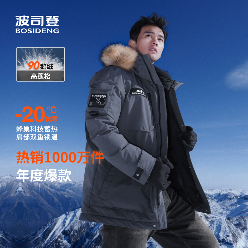 Popular stars and Bosideng winter outdoor extreme cold couples warm windproof fur collar goose down jackets for men and women