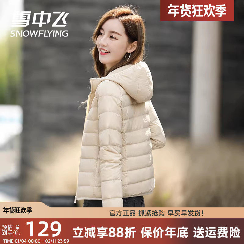 Fly in the snow light down jacket women's short 2025 new hooded stand-up collar outdoor fashion thin autumn and winter jacket