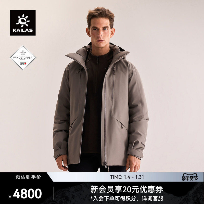 KAILAS men's down jacket 800 fluffy goose down warm hooded jacket GTX windproof mountaineering and hiking