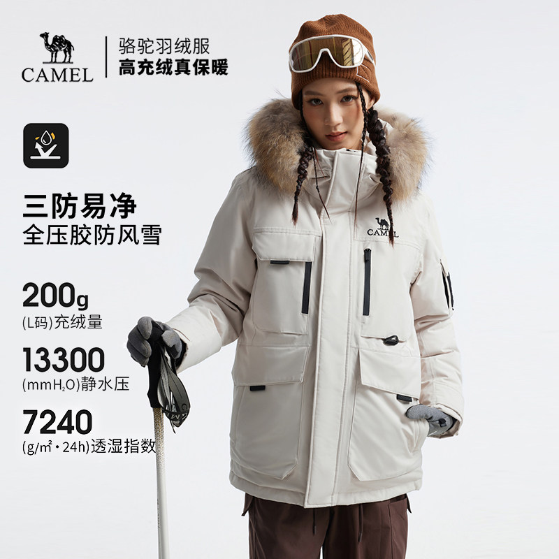 Camel down jacket women's mid-length style pie overcoming jacket 2026 winter outdoor cargo down jacket for men and women