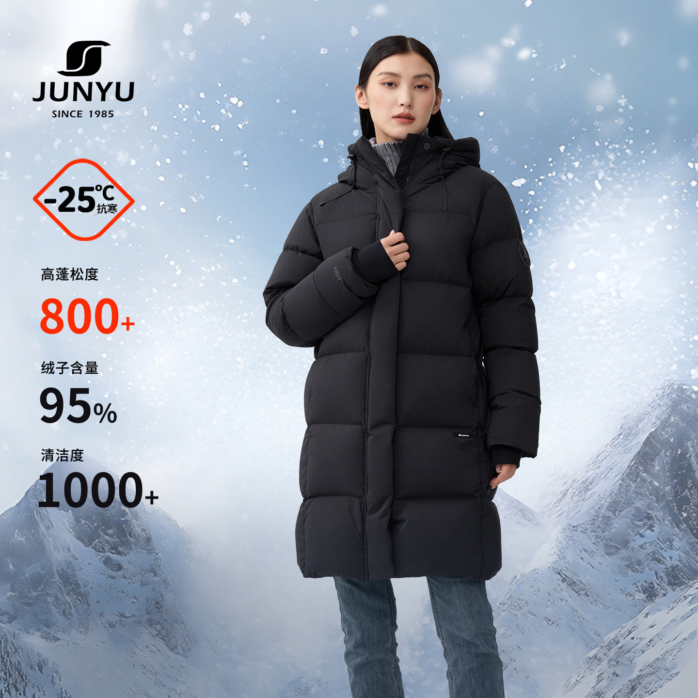 Junyu 800 fluffy goose down jacket women's mid-length winter hooded warm thickened extreme cold down jacket women's 293