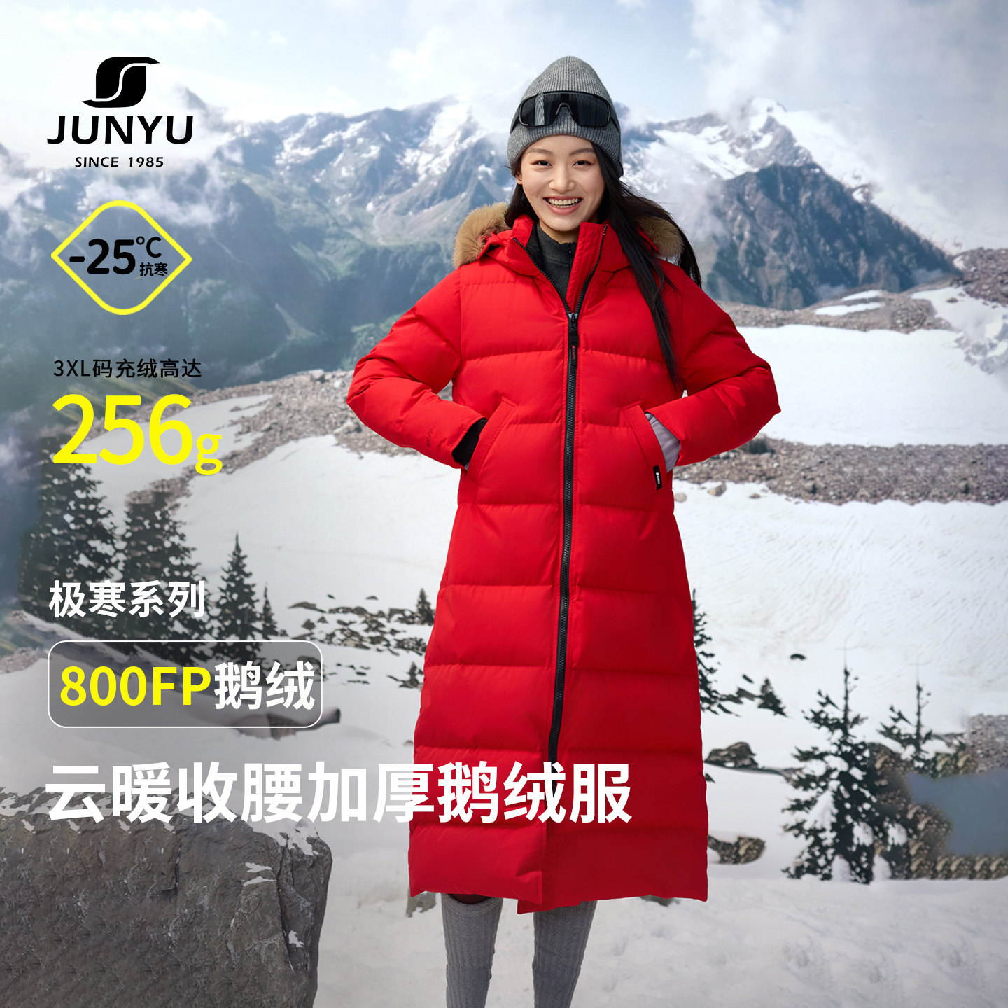 Junyu 800 puff down jacket women's long over the knee winter slim slim extremely cold goose down jacket 094