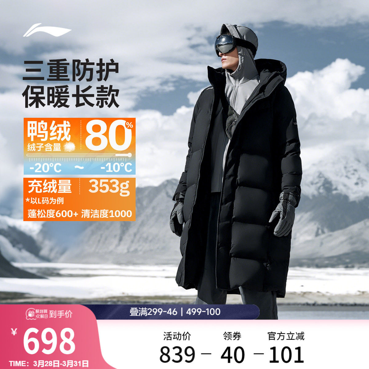 Li Ning hot pot down jacket丨Men's winter duck down thickened tops cold-proof and warm clothes long sports jackets for men
