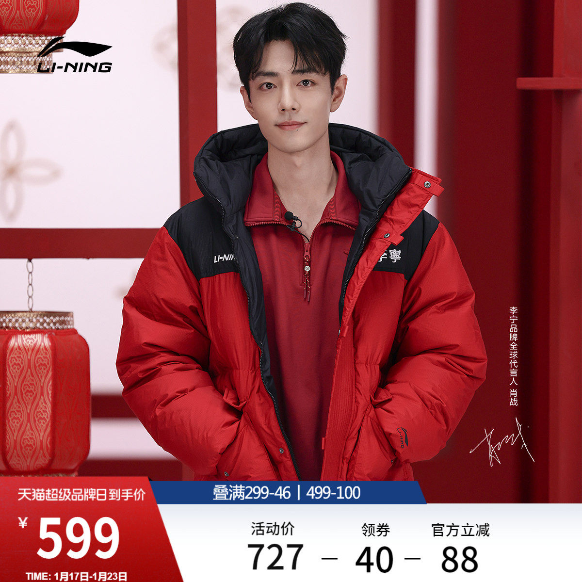 Xiao Zhan's same Li Ning hot pot down jacket丨Couple winter parka workwear women's red warm sports jacket for men