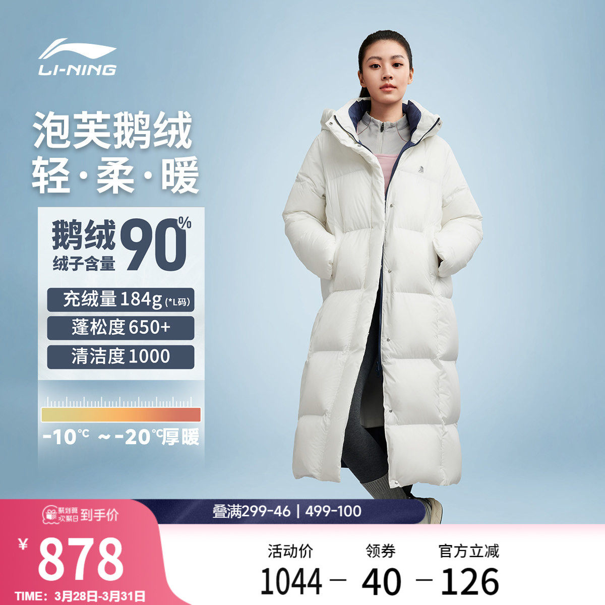 Li Ning hot pot down jacket丨Winter new long clothes women's hooded puffs goose down warm sports tops