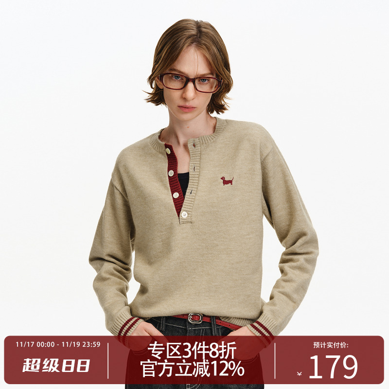 PCLP neutral color henry collar sweater spring and autumn loose retro trend lazy couple pullover long sleeve knitwear