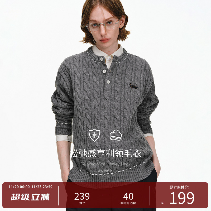 PCLP "wool blend" twist henry collar sweater spring and autumn loose couple pullover long sleeve knitwear