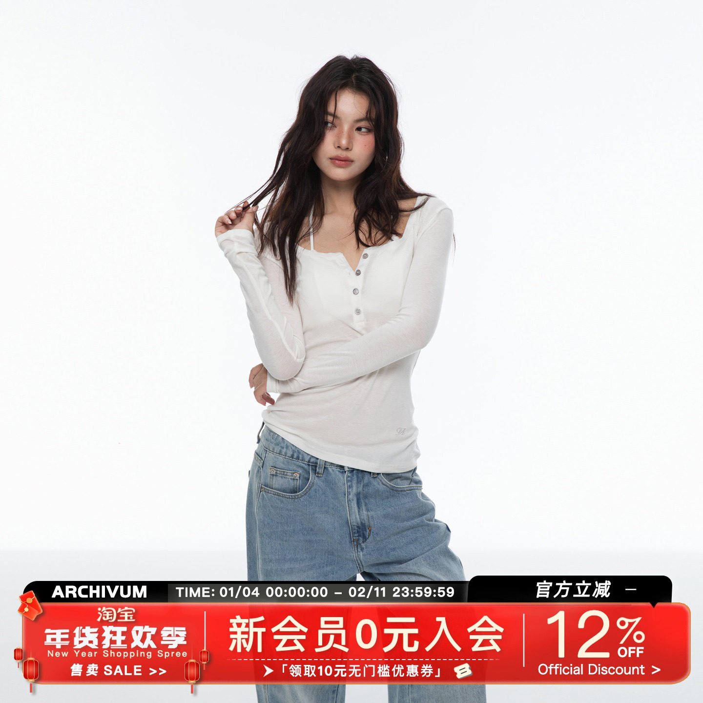 Archivum Lyocell Tencel wool blend U-shaped Henry long sleeve base top slim slim for autumn